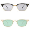 スクエアレンズのブロウフレームです。フロントフレームの縦幅を細くすることによってかけたときのシャープなイメージを演出することができました!ブラックカラーのブロウラインでベーシックなコーディネイト、クリアブロウラインで一味違うコーディネイトを、HIPHOP、レゲエ、パンクロック、ダンスミュージック、全てのストリートファッションに!